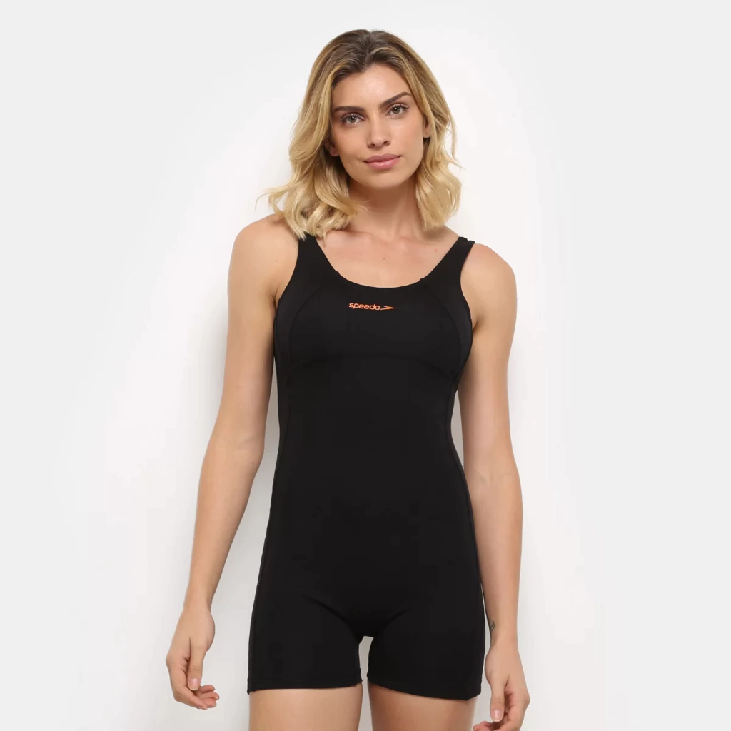 O Macaquinho Speedo Basic é ideal para a prática da hidroginástica. Possui tecido elástico, que se ajusta perfeitamente às linhas femininas. É maleável e oferece liberdade de movimentos. Logo estampado na parte frontal. Recorte para maior sustentação da região do busto. Parte traseira com decote cavado.